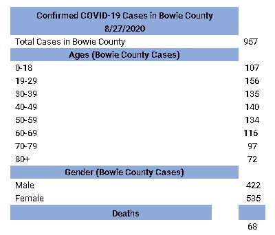 8-27-2020 – Updated COVID 19 Numbers for Texarkana Area