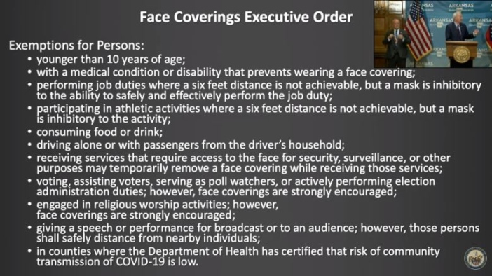 In his daily address to the state, Arkansas Governor Asa Hutchinson has issued an order that requires residents to wear face masks in public places in an effort to slow the spread of COVID 19. The order takes effect on Monday, July 20 and can carry a penalty of up to $500.