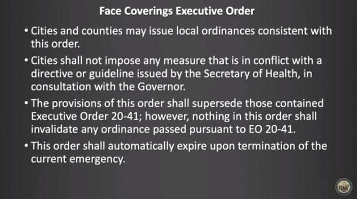 The order will go into effect on Monday, July 20, 2020.