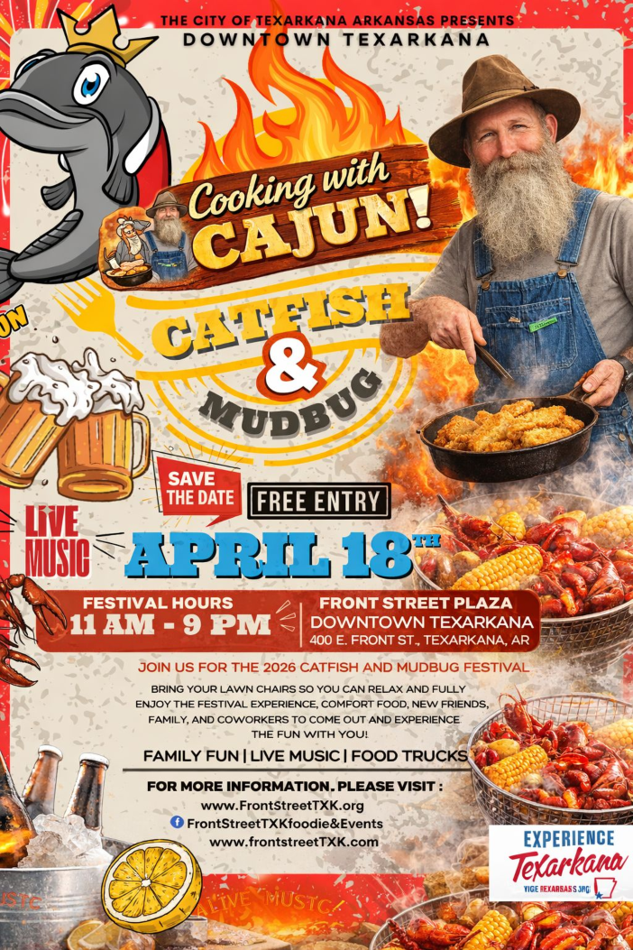 Food lovers, music fans, and families looking for a full day of fun will soon have something to circle on the calendar. The Catfish & Mudbug Festival is set to take over downtown Texarkana on Saturday, April 18, bringing Cajun cooking, live music, and plenty of Southern flavor to Front Street Plaza.