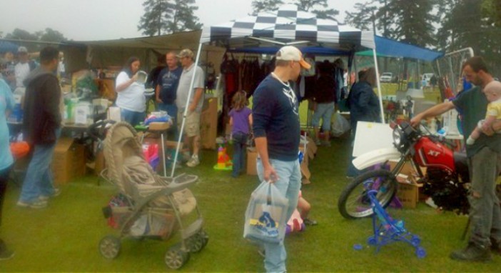 All items are welcome for sale except animals, firearms, weapons of any kind, or food. There are always a lot of vendors and shoppers at this big community-wide yard sale.
