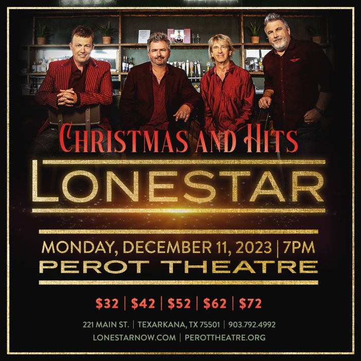 So, mark your calendars, gather your loved ones, and prepare to be serenaded by the enchanting melodies of Lonestar as they bring their “Christmas & Hits Tour” to the Perot Theatre in Texarkana. It’s a chance to make lasting memories, immerse yourself in the joy of the season, and relish the sweet harmonies of one of country music’s most iconic groups. Let Lonestar help you create the perfect soundtrack to your holiday season!
