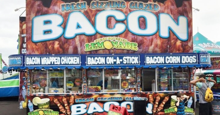 #31 Hog Heaven All Wrapped Up in Bacon – Bacon Wrapped Jalapenos, Bacon Wrapped Chicken on a Stick, Bacon Wrapped Hot Dogs, Stuffed Chicken Bites, Bacon Fries, Bacon Nachos, Bacon on a Stick, Sweet Tea & Drinks.
