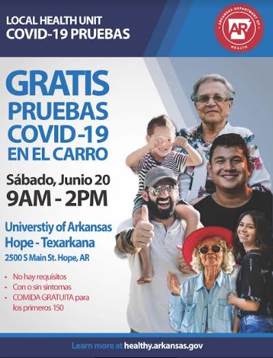 The Hempstead County Health Unit will be providing free COVID-19 testing on Saturday, June 20, from 9:00 a.m. to 2:00 p.m. in front of Hempstead Hall on the University of Arkansas Hope campus. Area residents are encouraged to attend this free drive-thru testing event if they are showing COVID-19 symptoms or not. A free meal will be provided to the first 150 attendees who are screened.