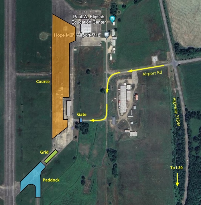 All entrants must comply with SCCA Solo rules. A SNELL-rated helmet is required, though ARSCCA provides a limited number of loaner helmets. Camping is not permitted on-site, but nearby hotels include Hampton Inn & Suites, Holiday Inn Express, Best Western, and Super 8 by Wyndham.