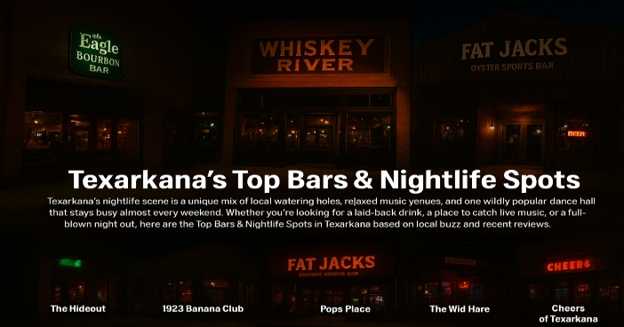 Texarkana’s nightlife scene is a unique mix of local watering holes, relaxed music venues, and one wildly popular dance hall that stays busy almost every weekend. Whether you’re looking for a laid-back drink, a place to catch live music, or a full-blown night out, here are the Top Bars & Nightlife Spots in Texarkana based on local buzz and recent reviews.