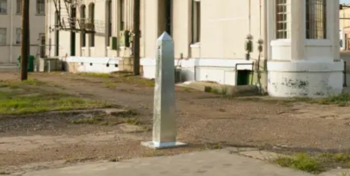Back in 2014, locals taking part in “Haunted History Tours” of downtown Texarkana stumbled across something odd — a mysterious galvanized steel obelisk that had quietly appeared in the vacant lot between the Lofts at the Grim and the Rialto Building. At the time, no one knew exactly what it was or where it came from. A code on the structure hinted at more information, and eventually, the truth emerged: it was part of an ambitious international art project with deep historical roots.