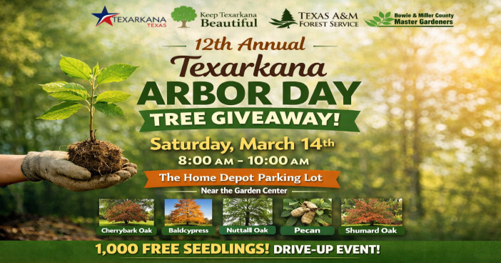 Residents will have the opportunity to add a little more green to their yards this weekend during the 12th Annual Texarkana Arbor Day Tree Giveaway.