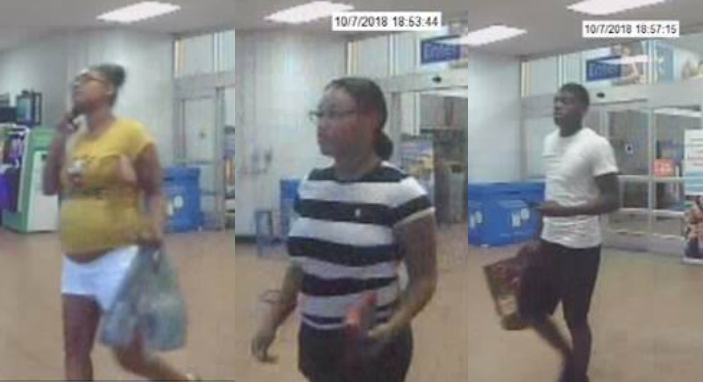 On October 7th, these three people went into the Walmart Supercenter at 4000 New Boston Road and made several hundred dollars in purchases using counterfeit money. As we investigated it, we learned that they did the same thing at stores in Texarkana Arkansas, Mt. Pleasant, Atlanta, and Sulphur Springs within days of each other. They were even wearing the exact same clothes in some of the surveillance videos from those stores as they were when they did it here. They all got into the dark colored vehicle that you see in the last picture and left together.