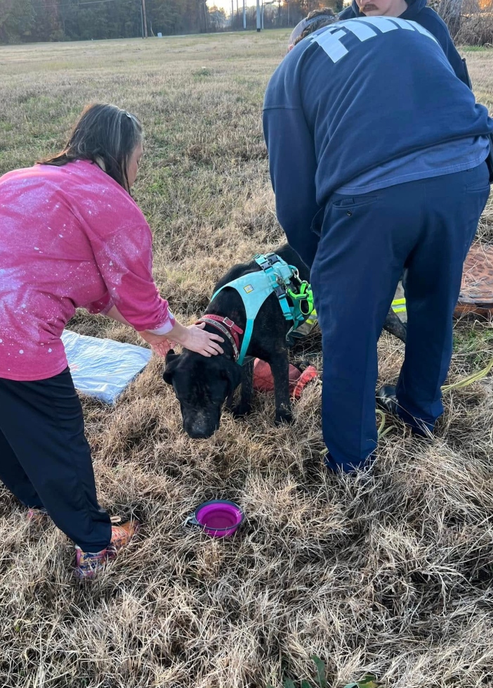 The Texarkana Texas Fire Department didn’t hesitate. A team of dedicated firefighters arrived on the scene with a ladder, harness, rope, and plenty of determination. Freeing Rambo was no small feat, his size and the depth of the manhole presented a challenge. But after some strategic maneuvering, the rescuers hoisted the 100-pound pup back to safety.