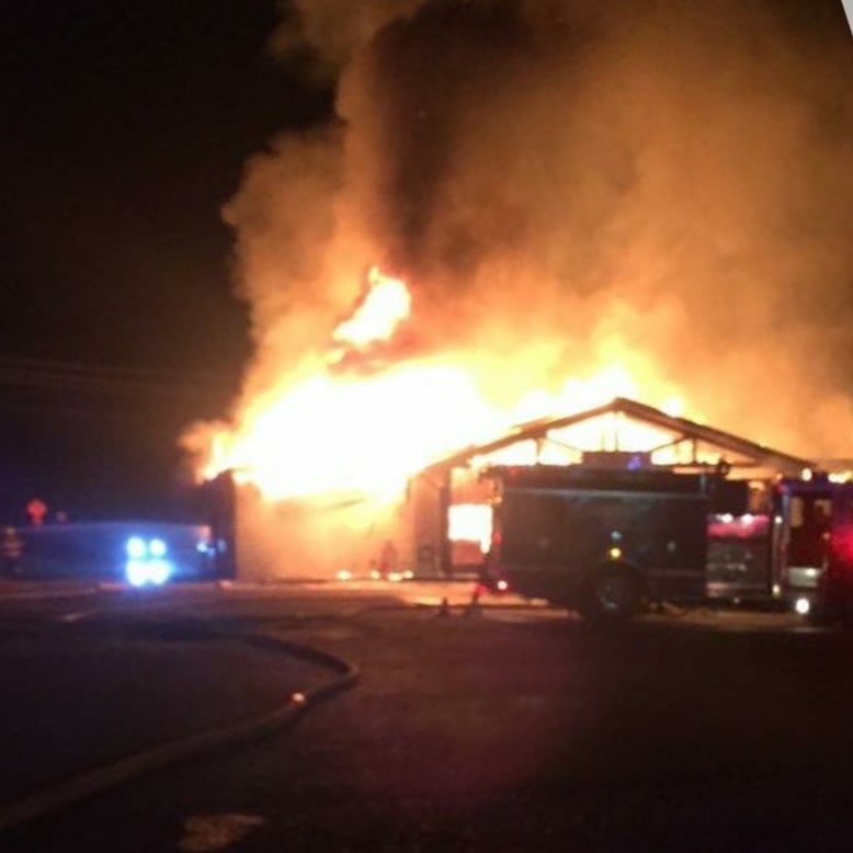 The building was a complete loss and damaged part of the awning between the restaurant and the bank next door. No injuries were reported in the blaze, and an investigation into the cause continues at this time.