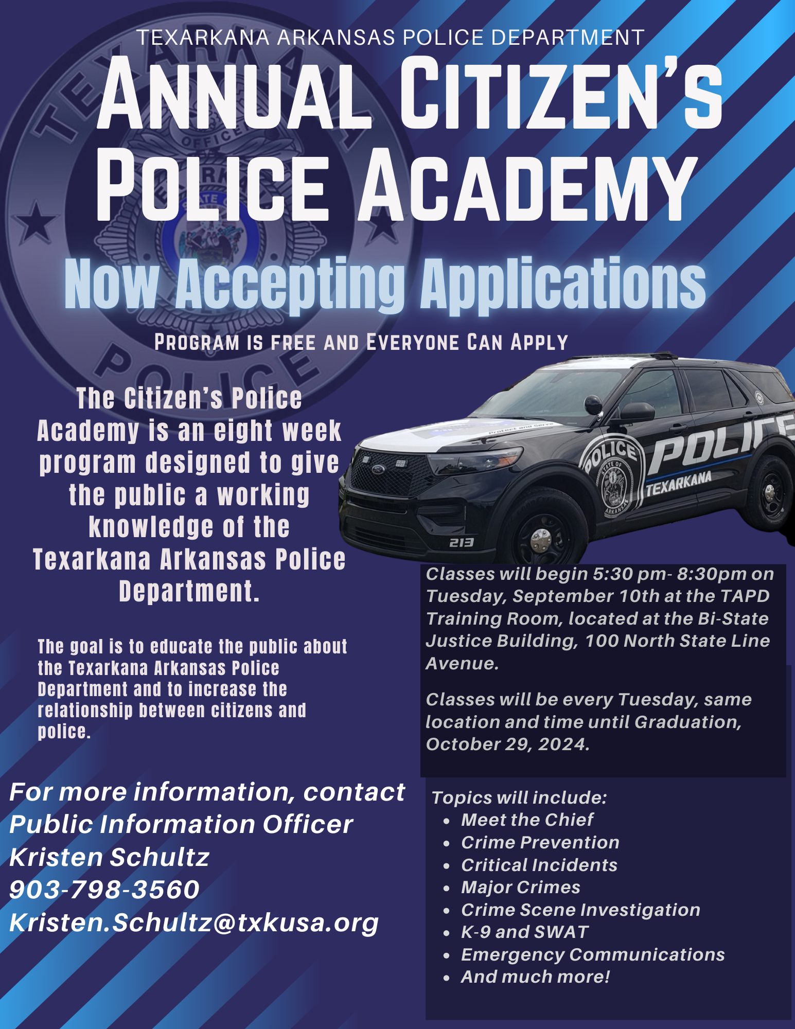 Texarkana Police Invites Community Participation in 2024 Citizen’s Police Academy