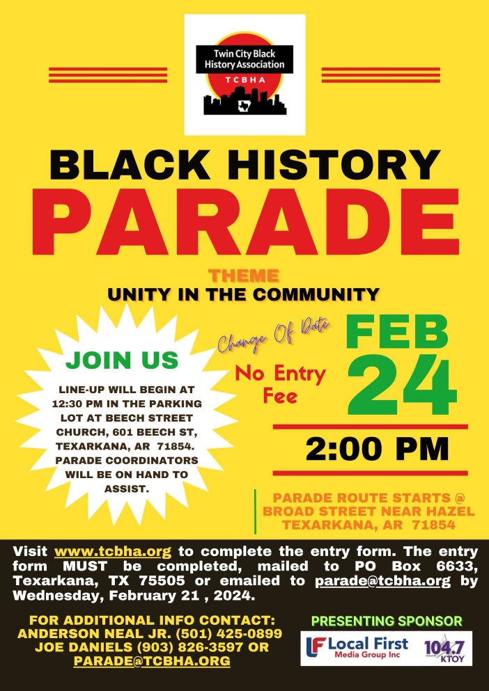Due to the weather, organizers for Texarkana’s 2024 Black History Parade have rescheduled all events to Saturday, February 24, 2024. The MLK Parade was canceled in January due to weather also, so make plans to participate in these upcoming events.